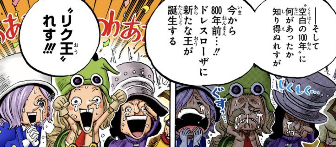His cry of "Pirates are attacking!" came true with the Black Cat Pirates' invasion, and his tall tale about carrying a giant goldfish to a land of dwarves connected to the Tontatta Kingdom in Dressrosa.
